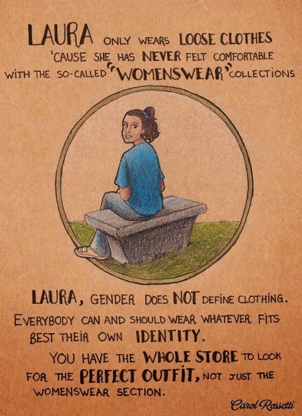 Çünkü kendisini kadın giyim koleksiyonlarıyla hiç rahat hissetmiyor. Laura,